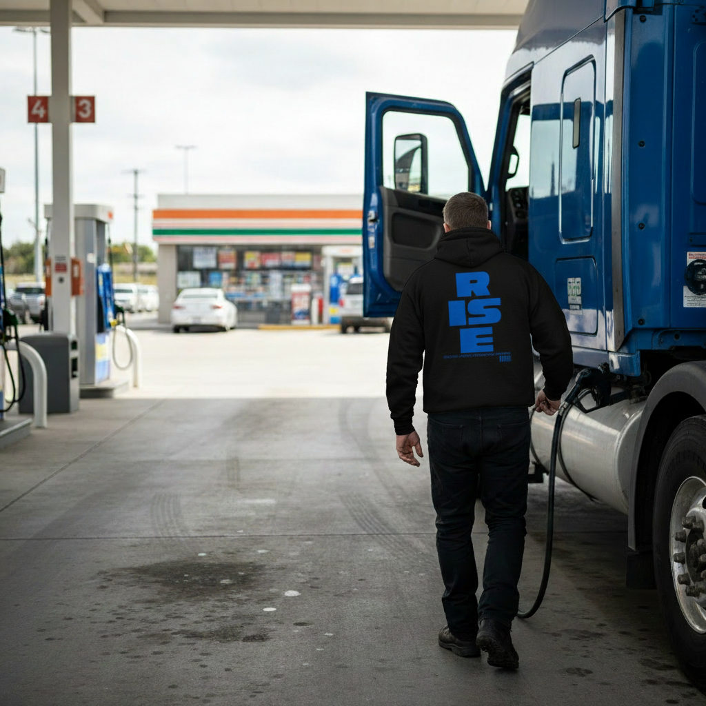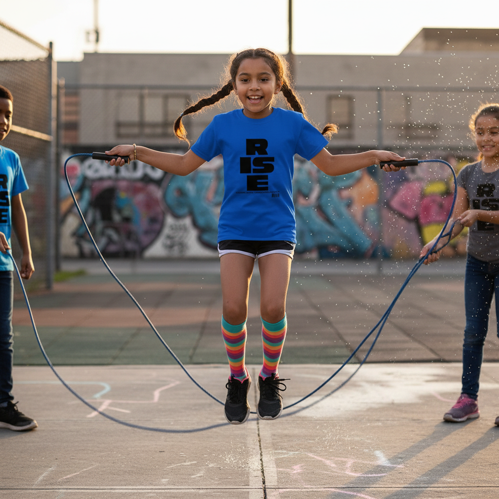 Stand tall. This striking design stacks the RISE message vertically in bold block letters—impossible to miss, impossible to ignore.